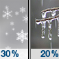 Temperature: 30°F Wind Speed: 2 mph Wind Direction: NE Forecast: A chance of freezing rain before 1am, then a chance of rain and snow between 1am and 3am, then a chance of rain and snow. Cloudy, with a low around 30. Northeast wind around 2 mph. Chance of precipitation is 50%. Little or no ice accumulation expected. |