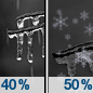 Temperature: 40°F Wind Speed: 5 mph Wind Direction: N Forecast: A chance of rain and snow. Mostly cloudy, with a high near 40. North wind around 5 mph. Chance of precipitation is 50%. |