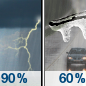 Temperature: 37°F Wind Speed: 15 to 20 mph Wind Direction: NNE Forecast: Showers and thunderstorms. Cloudy. Low around 37, with temperatures rising to around 41 overnight. North northeast wind 15 to 20 mph, with gusts as high as 35 mph. Chance of precipitation is 90%. New rainfall amounts between a half and three quarters of an inch possible. |