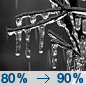Temperature: 24°F Wind Speed: 15 mph Wind Direction: N Forecast: Freezing rain. Cloudy, with a low around 24. North wind around 15 mph, with gusts as high as 30 mph. Chance of precipitation is 90%. New ice accumulation of less than half an inch possible. |