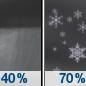 Temperature: 21°F Wind Speed: 7 mph Wind Direction: W Forecast: Snow showers. Mostly cloudy, with a low around 21. |