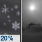 Temperature: -3°F Wind Speed: 6 to 10 mph Wind Direction: SW Forecast: A slight chance of snow before 11pm, then patchy blowing snow. Mostly clear. Low around -3, with temperatures rising to around 8 overnight. Wind chill values as low as -13. Southwest wind 6 to 10 mph, with gusts as high as 16 mph. Chance of precipitation is 20%. New snow accumulation of around one inch possible. |