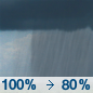 Temperature: 36°F Wind Speed: 10 to 15 mph Wind Direction: ESE Forecast: Rain showers. Cloudy, with a low around 36. East southeast wind 10 to 15 mph, with gusts as high as 30 mph. Chance of precipitation is 100%. |