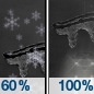 Temperature: 27°F Wind Speed: 3 to 7 mph Wind Direction: S Forecast: A slight chance of snow between 7pm and 8pm, then freezing rain likely between 8pm and 11pm, then freezing rain likely and patchy fog between 11pm and 1am, then rain and patchy fog. Mostly cloudy. Low around 27, with temperatures rising to around 37 overnight. South wind 3 to 7 mph. Chance of precipitation is 100%. Little or no ice accumulation expected. |