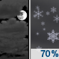 Temperature: 12°F Wind Speed: 10 mph Wind Direction: S Forecast: Snow likely between midnight and 3am, then snow likely and a slight chance of freezing drizzle. Mostly cloudy. Low around 12, with temperatures rising to around 17 overnight. South wind around 10 mph. Chance of precipitation is 70%. New snow accumulation of around one inch possible. |