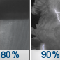 Temperature: 63°F Wind Speed: 15 to 25 mph Wind Direction: S Forecast: Rain showers before midnight, then showers and thunderstorms. Mostly cloudy, with a low around 63. South wind 15 to 25 mph. |