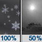 Temperature: 15°F Wind Speed: 10 mph Wind Direction: SW Forecast: Snow likely. Cloudy, with a high near 15. Southwest wind around 10 mph. Chance of precipitation is 70%. New snow accumulation of less than half an inch possible. |