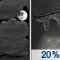Temperature: 13°F Wind Speed: 10 mph Wind Direction: WNW Forecast: A slight chance of snow after midnight. Mostly cloudy, with a low around 13. West northwest wind around 10 mph. Chance of precipitation is 20%. |