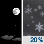 Temperature: 24°F Wind Speed: 5 mph Wind Direction: E Forecast: A chance of snow. Mostly cloudy, with a low around 24. |