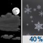 Temperature: 12°F Wind Speed: 8 mph Wind Direction: SSW Forecast: A chance of snow showers after 4am. Partly cloudy. Low around 12, with temperatures rising to around 17 overnight. South southwest wind around 8 mph. Chance of precipitation is 40%. New snow accumulation of less than half an inch possible. |