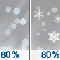 Temperature: 29°F Wind Speed: 6 to 13 mph Wind Direction: NE Forecast: Snow. Cloudy, with a high near 29. Northeast wind 6 to 13 mph, with gusts as high as 25 mph. Chance of precipitation is 100%. New snow accumulation of 4 to 8 inches possible. |