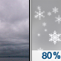 Temperature: 34°F Wind Speed: 10 to 15 mph Wind Direction: WNW Forecast: Snow likely between noon and 2pm, then rain and snow. Cloudy, with a high near 34. West northwest wind 10 to 15 mph, with gusts as high as 30 mph. Chance of precipitation is 80%. New snow accumulation of less than one inch possible. |
