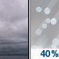 Temperature: 40°F Wind Speed: 2 mph Wind Direction: NNW Forecast: A chance of rain. Cloudy, with a low around 40. North northwest wind around 2 mph. Chance of precipitation is 50%. New rainfall amounts between a tenth and quarter of an inch possible. |