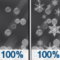 Temperature: 31°F Wind Speed: 3 to 7 mph Wind Direction: NE Forecast: Sleet and patchy fog and a slight chance of freezing rain before 10am, then freezing rain and a slight chance of sleet between 10am and 11am, then sleet and freezing rain between 11am and 4pm, then freezing rain and a slight chance of sleet. Cloudy, with a high near 31. Northeast wind 3 to 7 mph. Chance of precipitation is 100%. New snow accumulation of 1 to 2 inches possible. New ice accumulation of less than half an inch possible. |