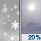 Temperature: -8°F Wind Speed: 0 to 5 mph Wind Direction: N Forecast: A slight chance of snow. Mostly cloudy, with a low around -8. North wind 0 to 5 mph. Chance of precipitation is 20%. |