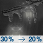 Temperature: 24°F Wind Speed: 6 mph Wind Direction: NW Forecast: A chance of freezing rain and a chance of rain showers. Cloudy, with a low around 24. Chance of precipitation is 30%. |