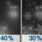 Temperature: 33°F Wind Speed: 5 to 9 mph Wind Direction: N Forecast: A chance of freezing rain before 7am, then a slight chance of snow and a slight chance of freezing rain between 7am and 1pm. Mostly sunny, with a high near 33. Chance of precipitation is 40%. |