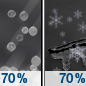 Temperature: 21°F Wind Speed: 9 to 20 mph Wind Direction: NE Forecast: Snow and sleet before 1am, then a chance of snow and a chance of freezing rain. Cloudy. Low around 21, with temperatures rising to around 28 overnight. Wind chill values as low as 14. Northeast wind 9 to 20 mph. Chance of precipitation is 70%. New snow accumulation of around one inch possible. Little or no ice accumulation expected. |