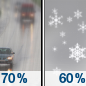 Temperature: 26°F Wind Speed: 10 mph Wind Direction: N Forecast: Rain and snow likely. Mostly cloudy, with a low around 26. Chance of precipitation is 60%. New snow accumulation of less than half an inch possible. |