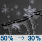 Temperature: 15°F Wind Speed: 6 mph Wind Direction: N Forecast: A chance of snow and a chance of freezing rain. Mostly cloudy, with a low around 15. Chance of precipitation is 50%. |