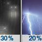 Temperature: 29°F Wind Speed: 6 mph Wind Direction: NE Forecast: A chance of rain before midnight, then a slight chance of thunderstorms and a slight chance of rain. Mostly cloudy, with a low around 29. Chance of precipitation is 30%. |