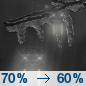 Temperature: 41°F Wind Speed: 0 to 5 mph Wind Direction: SE Forecast: Rain likely. Cloudy, with a low around 41. Southeast wind 0 to 5 mph. Chance of precipitation is 60%. |
