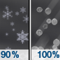 Temperature: 14°F Wind Speed: 7 mph Wind Direction: NE Forecast: Snow before 1am, then snow and sleet. Cloudy, with a low around 14. Chance of precipitation is 100%. New snow accumulation of 7 to 11 inches possible. Little or no ice accumulation expected. |