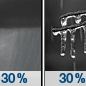 Temperature: 26°F Wind Speed: 5 mph Wind Direction: W Forecast: A chance of rain showers before midnight, then a chance of freezing rain. Partly cloudy, with a low around 26. Chance of precipitation is 30%. |