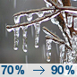 Temperature: 29°F Wind Speed: 10 to 15 mph Wind Direction: NE Forecast: Freezing rain. Cloudy, with a high near 29. Northeast wind 10 to 15 mph. Chance of precipitation is 90%. New ice accumulation of less than half an inch possible. |