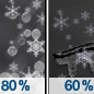 Temperature: 17°F Wind Speed: 5 to 10 mph Wind Direction: NE Forecast: Freezing rain and a slight chance of sleet before 9pm, then sleet and freezing rain between 9pm and 3am, then snow showers likely and sleet likely. Cloudy, with a low around 17. Northeast wind 5 to 10 mph. Chance of precipitation is 80%. New snow accumulation of less than half an inch possible. Little or no ice accumulation expected. |