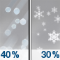 Temperature: 27°F Wind Speed: 7 to 15 mph Wind Direction: NW Forecast: A chance of snow and a chance of sleet before 7am, then a chance of snow showers between 7am and 1pm. Mostly sunny, with a high near 27. Northwest wind 7 to 15 mph, with gusts as high as 29 mph. Chance of precipitation is 40%. New snow accumulation of less than half an inch possible. Little or no ice accumulation expected. |