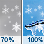 Temperature: 24°F Wind Speed: 10 to 14 mph Wind Direction: NE Forecast: Snow likely before noon, then snow and a slight chance of sleet and a slight chance of freezing rain between noon and 3pm, then snow and freezing rain and a slight chance of sleet. Cloudy, with a high near 24. Northeast wind 10 to 14 mph. Chance of precipitation is 100%. New snow accumulation of 3 to 5 inches possible. Little or no ice accumulation expected. |
