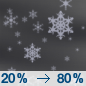 Temperature: 22°F Wind Speed: 6 mph Wind Direction: SW Forecast: Snow after 11pm. Mostly cloudy, with a low around 22. Southwest wind around 6 mph. Chance of precipitation is 80%. New snow accumulation of around one inch possible. |