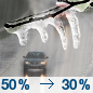 Temperature: 35°F Wind Speed: 15 mph Wind Direction: N Forecast: A chance of freezing rain and a chance of rain showers before noon, then a chance of sleet and a chance of freezing rain and a chance of rain showers. Cloudy, with a high near 35. Chance of precipitation is 50%. New snow accumulation of less than half an inch possible. New ice accumulation of less than half an inch possible. |