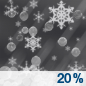 Temperature: 18°F Wind Speed: 10 to 15 mph Wind Direction: N Forecast: A slight chance of sleet and a slight chance of freezing rain. Mostly cloudy, with a low around 18. Chance of precipitation is 20%. Little or no ice accumulation expected. |