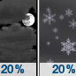 Temperature: 13°F Wind Speed: 6 to 10 mph Wind Direction: NW Forecast: A slight chance of snow showers before 7am. Mostly cloudy, with a high near 13. Chance of precipitation is 20%. |