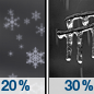 Temperature: 28°F Wind Speed: 6 mph Wind Direction: SW Forecast: A slight chance of rain and snow showers before midnight, then a chance of freezing rain. Partly cloudy, with a low around 28. |