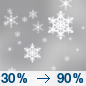 Temperature: 31°F Wind Speed: 10 to 15 mph Wind Direction: W Forecast: Snow. Mostly cloudy, with a high near 31. West wind 10 to 15 mph, with gusts as high as 30 mph. Chance of precipitation is 90%. New snow accumulation of 1 to 3 inches possible. |