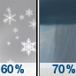 Temperature: 46°F Wind Speed: 5 to 10 mph Wind Direction: SW Forecast: A slight chance of snow showers before 11am, then rain showers likely. Cloudy, with a high near 46. Southwest wind 5 to 10 mph. Chance of precipitation is 70%. New snow accumulation of less than half an inch possible. |