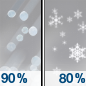 Temperature: 31°F Wind Speed: 3 to 8 mph Wind Direction: N Forecast: Snow after 9am. Cloudy. High near 31, with temperatures falling to around 23 in the afternoon. North wind 3 to 8 mph. Chance of precipitation is 100%. New snow accumulation of 4 to 8 inches possible. |