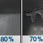 Temperature: 42°F Wind Speed: 5 to 10 mph Wind Direction: ENE Forecast: Showers and thunderstorms. Cloudy. Low around 42, with temperatures rising to around 47 overnight. East northeast wind 5 to 10 mph, with gusts as high as 20 mph. Chance of precipitation is 90%. New rainfall amounts between a quarter and half of an inch possible. |