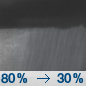Temperature: 46°F Wind Speed: 0 to 5 mph Wind Direction: S Forecast: Rain showers before 4am. Mostly cloudy, with a low around 46. South wind 0 to 5 mph. Chance of precipitation is 80%. New rainfall amounts between a quarter and half of an inch possible. |