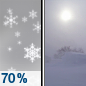 Temperature: 5°F Wind Speed: 2 to 13 mph Wind Direction: W Forecast: Snow showers likely. Cloudy, with a low around 5. Wind chill values as low as 0. West wind 2 to 13 mph, with gusts as high as 28 mph. Chance of precipitation is 70%. New snow accumulation of less than one inch possible. |
