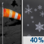 Temperature: 16°F Wind Speed: 7 to 26 mph Wind Direction: N Forecast: A chance of snow after midnight. Mostly cloudy, with a low around 16. North wind 7 to 26 mph. Chance of precipitation is 40%. New snow accumulation of less than half an inch possible. |