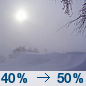 Temperature: 0°F Wind Speed: 9 to 17 mph Wind Direction: W Forecast: A chance of snow showers before 10pm. Partly cloudy, with a low around 0. Wind chill values as low as -13. West wind 9 to 17 mph. Chance of precipitation is 50%. New snow accumulation of less than one inch possible. |