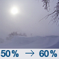 Temperature: 15°F Wind Speed: 9 to 15 mph Wind Direction: W Forecast: A chance of snow showers. Mostly cloudy, with a high near 15. Wind chill values as low as -10. West wind 9 to 15 mph, with gusts as high as 25 mph. Chance of precipitation is 50%. New snow accumulation of less than one inch possible. |