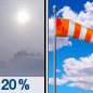 Temperature: 20°F Wind Speed: 8 mph Wind Direction: NW Forecast: Mostly sunny, with a high near 20. Wind chill values as low as -7. Northwest wind around 8 mph, with gusts as high as 21 mph. |