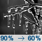 Temperature: 24°F Wind Speed: 6 mph Wind Direction: NNW Forecast: Freezing rain. Mostly cloudy, with a low around 24. Chance of precipitation is 90%. New snow accumulation of less than half an inch possible. New ice accumulation of less than half an inch possible. |