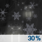 Temperature: 30°F Wind Speed: 3 to 9 mph Wind Direction: NE Forecast: A chance of rain before 1am. Cloudy, with a low around 30. Northeast wind 3 to 9 mph, with gusts as high as 18 mph. Chance of precipitation is 30%. |