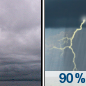 Temperature: 56°F Wind Speed: 7 to 10 mph Wind Direction: SE Forecast: Rain likely before 10am, then showers and thunderstorms between 10am and 1pm, then rain. Mostly cloudy, with a high near 56. Southeast wind 7 to 10 mph, with gusts as high as 18 mph. Chance of precipitation is 80%. New rainfall amounts between a quarter and half of an inch possible. |